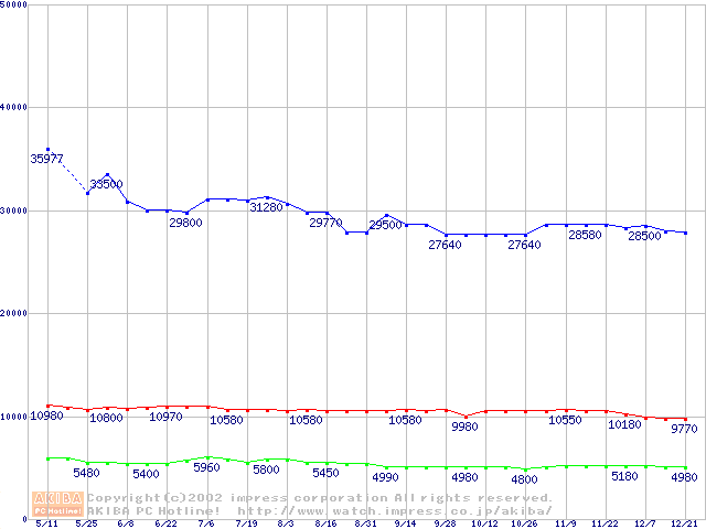 | [↓次グラフ]: | PC800-40 DRDRAM RIMM ECC対応の最安値推移 |