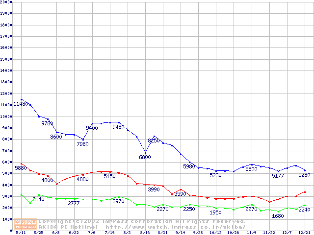| [↑前グラフ]: | PC133 SDRAM DIMM CasLatency=3の最安値推移 |
