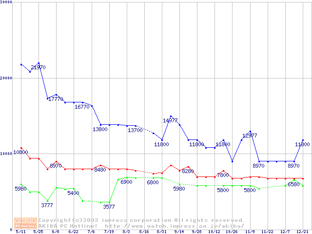 | [↑前グラフ]: | PC133 SDRAM DIMM CasLatency=3 ECC対応の最安値推移 |