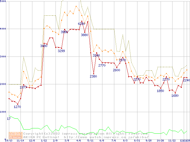 PC133 SDRAM DIMM CasLatency=2の最安値推移