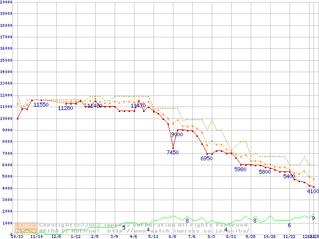 Athlon 1.1GHz(FSB200) バルクの価格推移