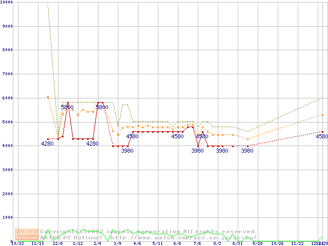 Socket 370 (PPGA,FSB 66MHz,L2 128KB)の最安値推移