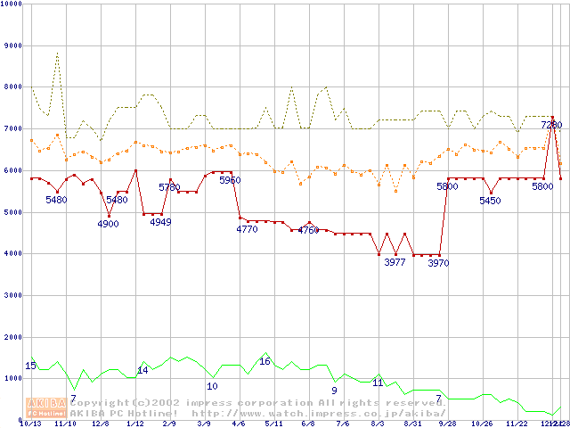 PC800-45 DRDRAM RIMM ECC対応の最安値推移