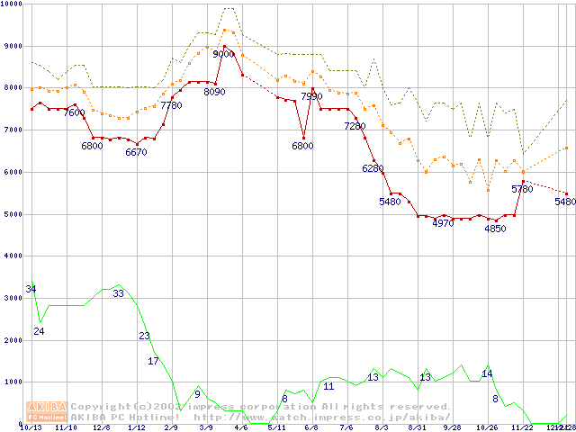 Celeron 900MHz FC-PGA リテールパッケージの価格推移