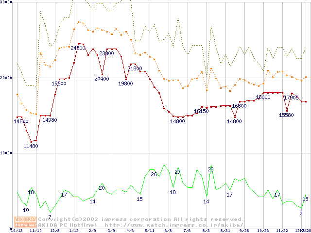 メモリ主要製品の最安値推移