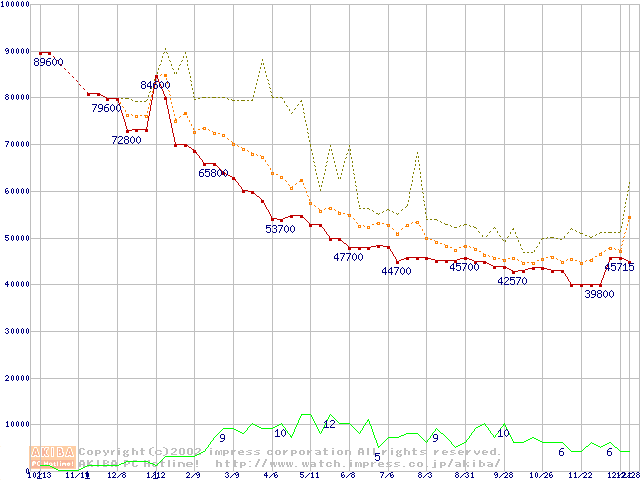 PC2100(DDR266) DDR SDRAM DIMM ECC対応 Registeredタイプの最安値推移