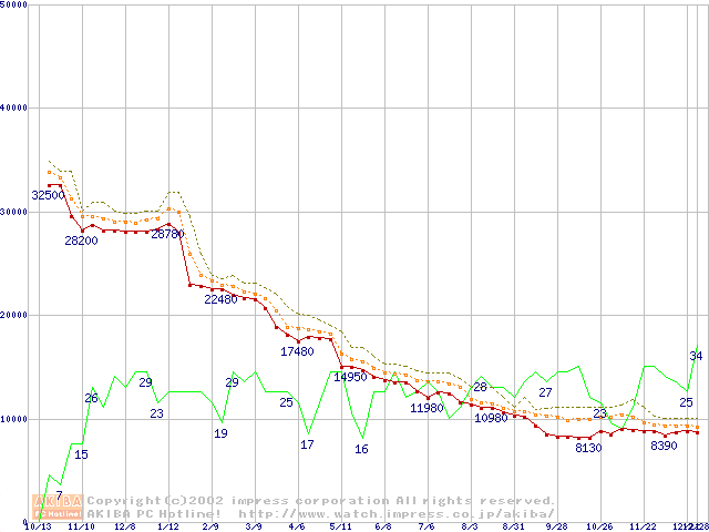 Athlon XP 1800+ (1.53GHz) リテールパッケージの価格推移