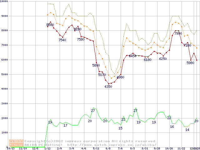 メモリ主要製品の最安値推移