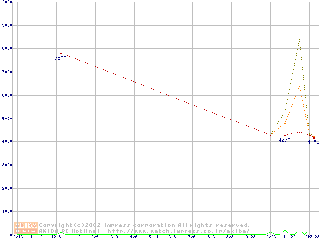PC2700(DDR333) DDR SDRAM DIMMの最安値推移