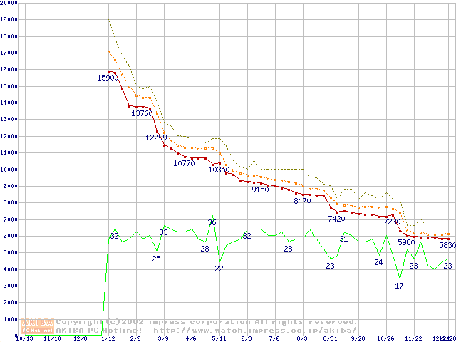 Celeron 1.30GHz FC-PGA2 リテールパッケージの価格推移