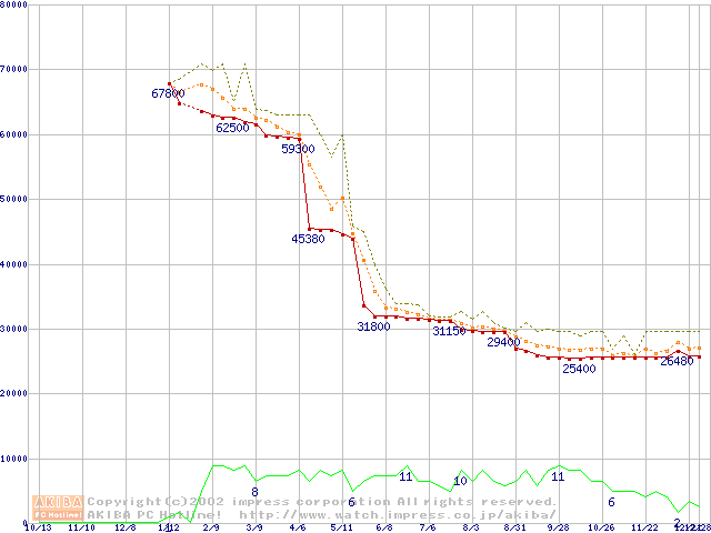 Socket 603 (micro-PGA,FSB 400MHz,L2 512KB,Prestonia)の最安値推移