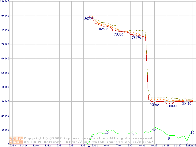 Socket 603 (micro-PGA,FSB 400MHz,L2 512KB,Prestonia)の最安値推移