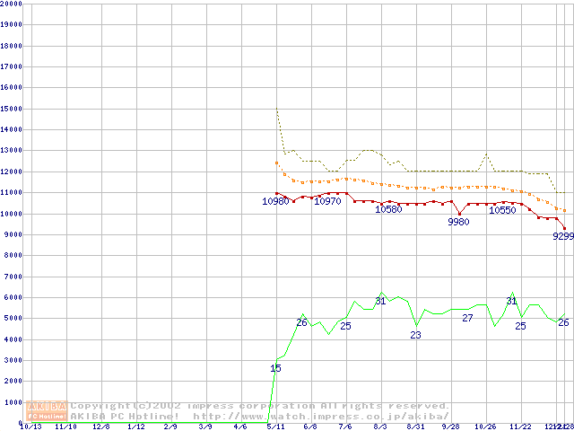 メモリ主要製品(最安値5千円~1万円未満)の最安値推移