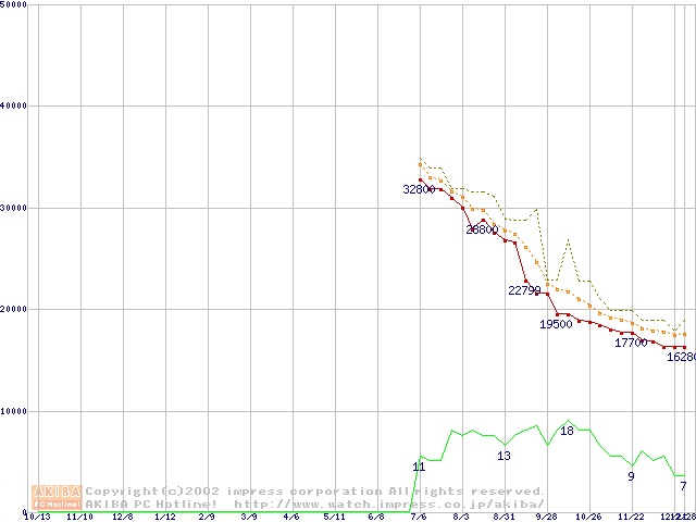 MKシリーズ (9.5mm,5400rpm,16MB,FDB,20GB/Platter)の最安値推移