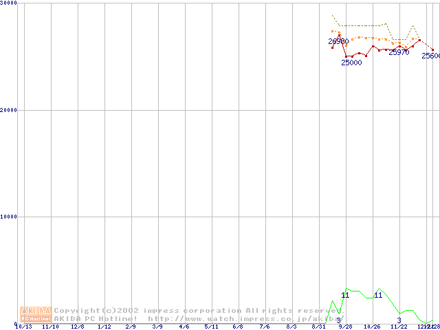 Socket A (OPGA,FSB 266MHz,L2 256KB,Thoroughbred)の最安値推移