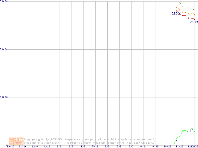 Socket A (OPGA,FSB 266MHz,L2 256KB,Thoroughbred)の最安値推移