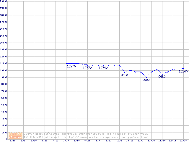 | [↑前グラフ]: | DK23EAシリーズ (9.5mm,4200rpm,2MB,FDB,30GB/Platter)の最安値推移 |