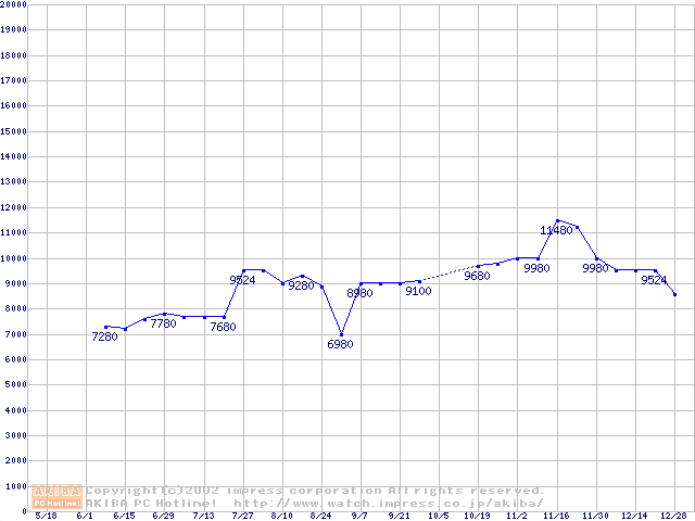 | [↓次グラフ]: | PC2100(DDR266) DDR SDRAM DIMM ECC対応の最安値推移 |