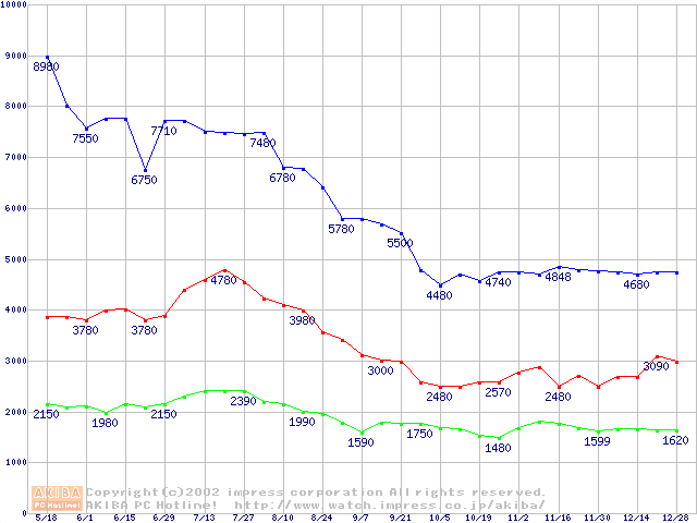 | [↓次グラフ]: | PC133 SDRAM DIMM CasLatency=2の最安値推移 |