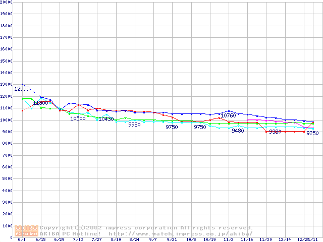 | [↑前グラフ]: | 2.5インチHDD主要製品の最安値推移 |