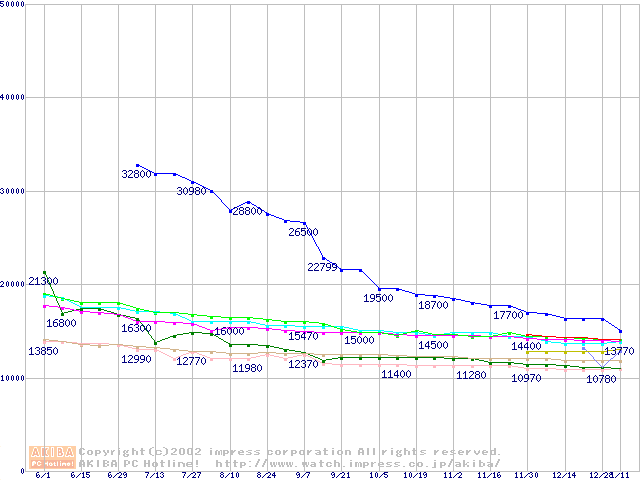 | [↓次グラフ]: | 2.5インチHDD主要製品(最安値1万5千円~2万円未満)の最安値推移 |