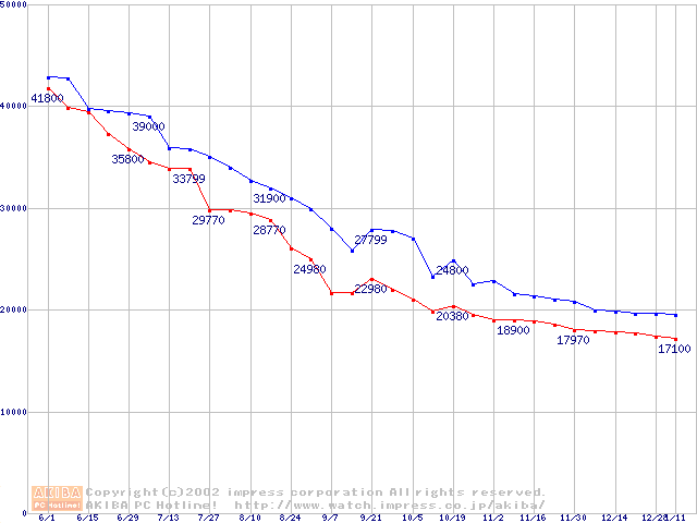 | [↓次グラフ]: | 2.5インチHDD主要製品(最安値2万円~3万円未満)の最安値推移 |