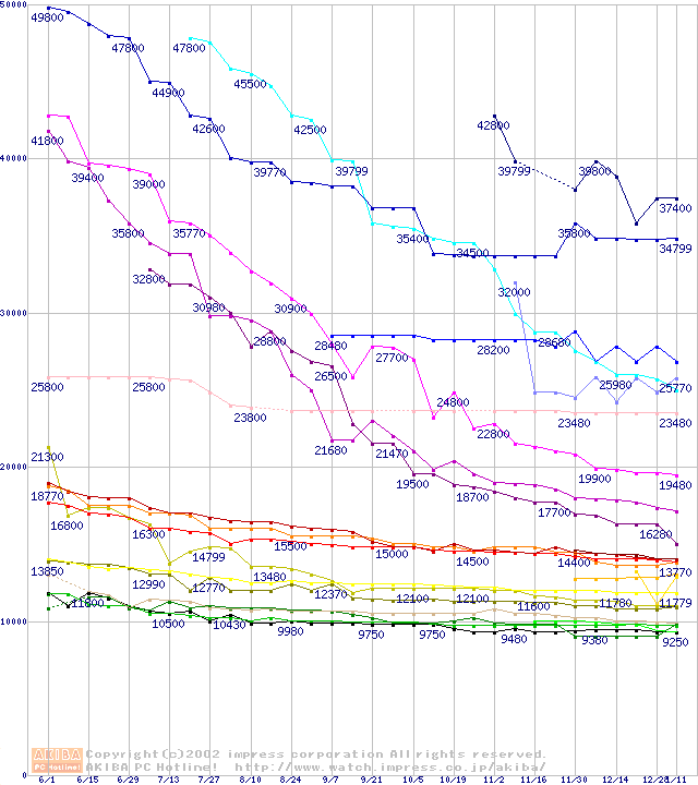 2.5インチHDD 60GB~80GB未満(12.5mm厚)の最安値推移