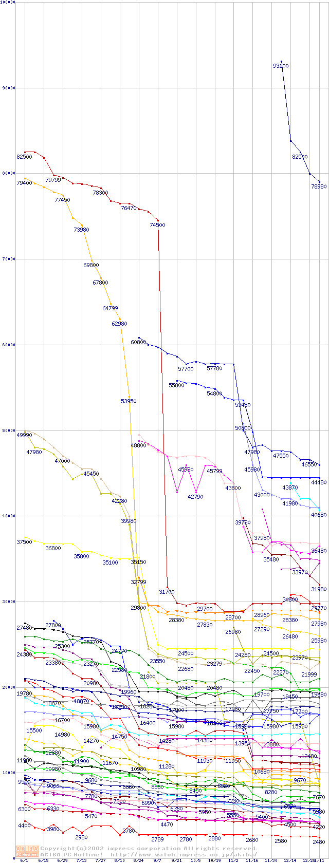 CPU主要製品の最安値推移