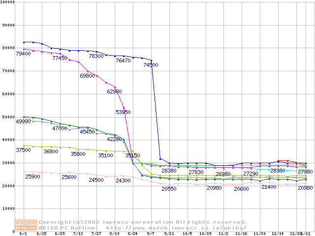 CPU主要製品(最安値2万円~3万円未満)の最安値推移