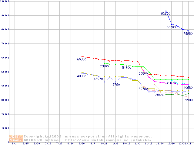 CPU主要製品(最安値3万円以上)の最安値推移