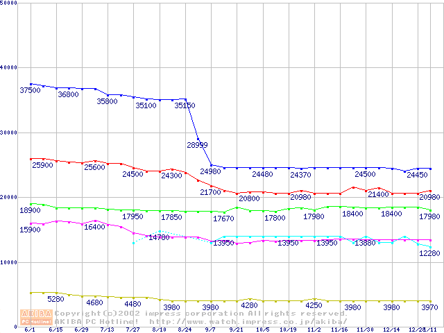Socket 370・FSB 133MHzの最安値推移