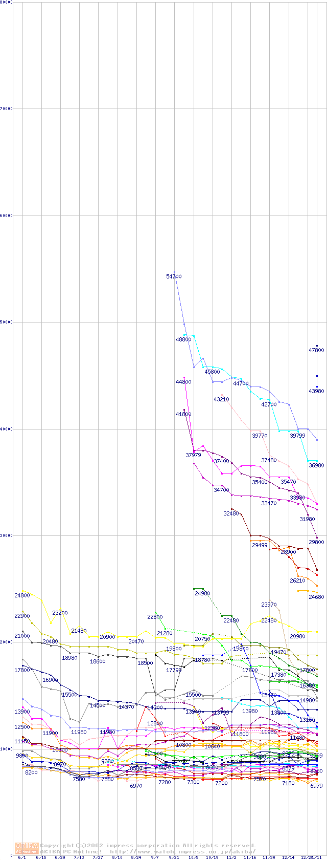 HDD主要製品の最安値推移