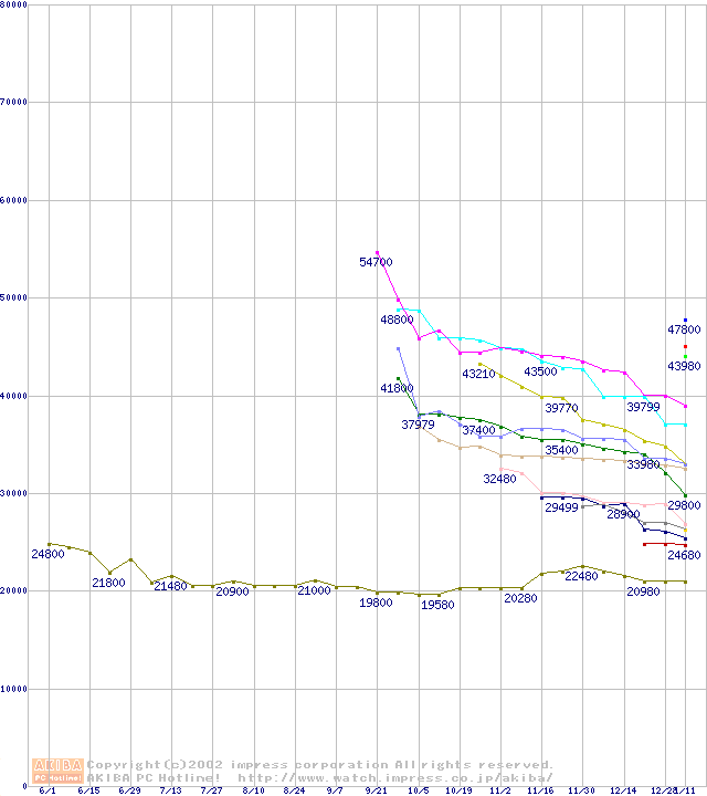 HDD主要製品(最安値1万5千円~2万円未満)の最安値推移