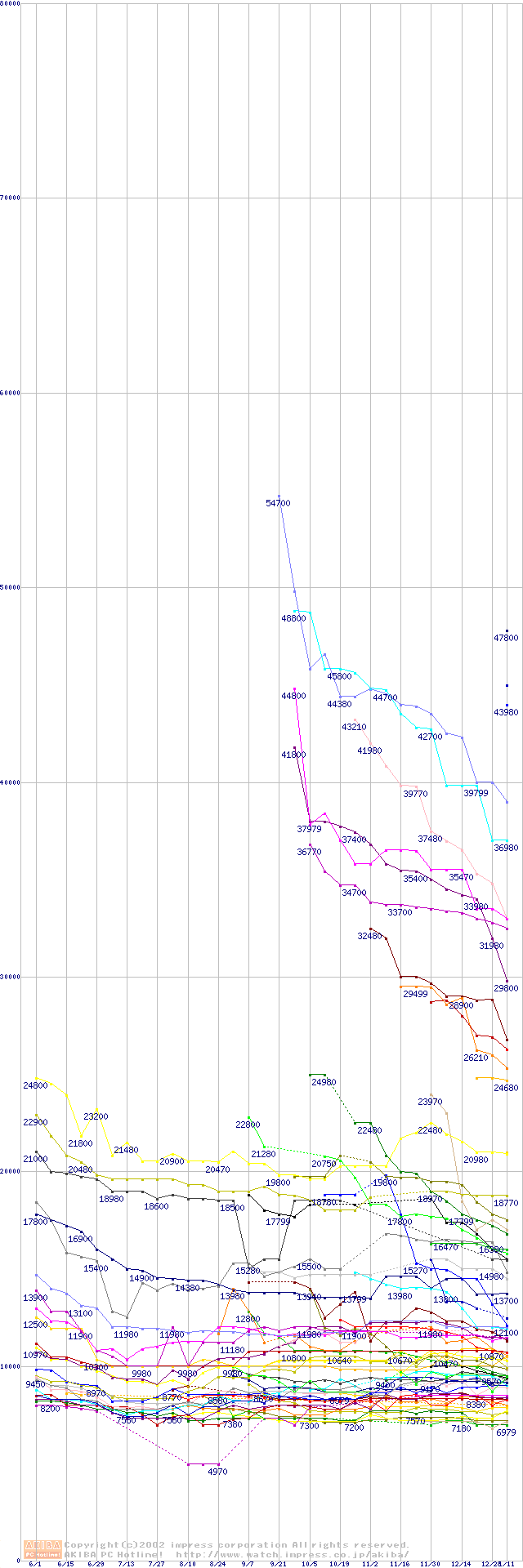 HDD 20GB~30GB未満(5400rpmクラス)の最安値推移