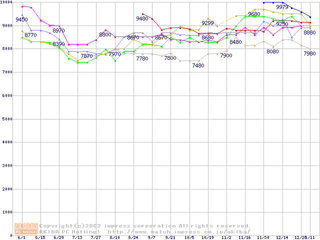 | [↓次グラフ]: | HDD 60GB~80GB未満(7200rpmクラス)の最安値推移 |