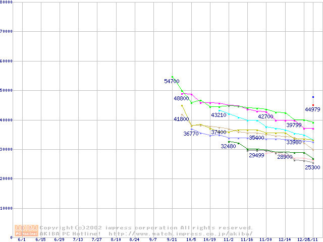 HDD 160GB以上(7200rpmクラス)の最安値推移