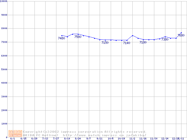 | [↑前グラフ]: | HDD 20GB~30GB未満(5400rpmクラス)の最安値推移 |