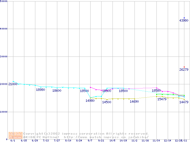 | [↓次グラフ]: | HDD 20GB~30GB未満(7200rpmクラス)の最安値推移 |