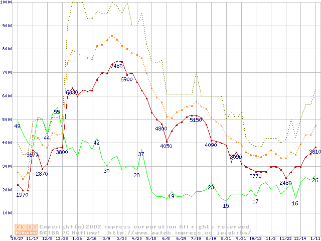 PC133 SDRAM DIMM CasLatency=2の最安値推移