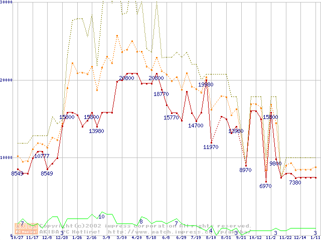 PC133 SDRAM DIMM CasLatency=3 ECC対応の最安値推移