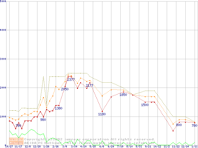 PC133 SDRAM DIMM CasLatency=3の最安値推移