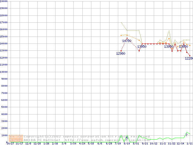 CPU主要製品(最安値1万円~2万円未満)の最安値推移