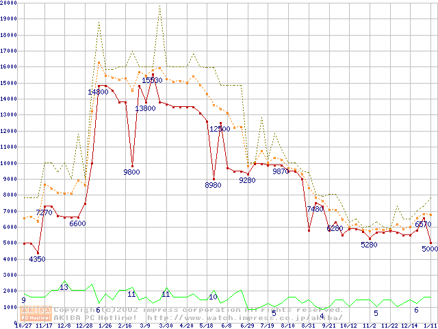 PC100 SDRAM DIMM CasLatency=2の最安値推移
