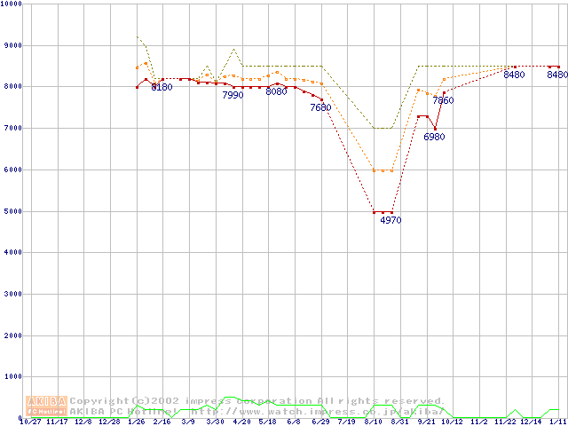 U5 (5400rpm,UltraATA/100 512KB)の最安値推移