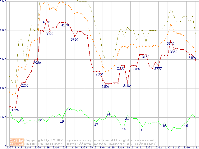 メモリ主要製品の最安値推移