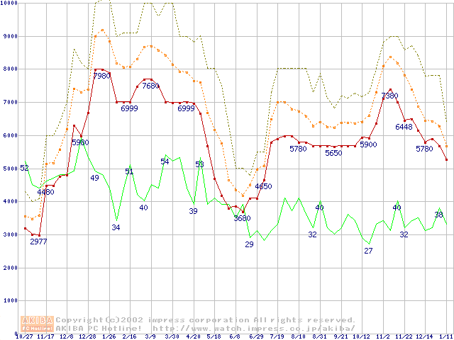 メモリ主要製品の最安値推移
