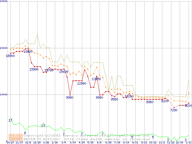 Socket A (PGA,FSB 200MHz,L2 256KB,Palomino)の最安値推移