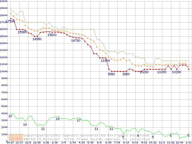 WD Caviar (7200rpm,UltraATA/100,2MB)の最安値推移