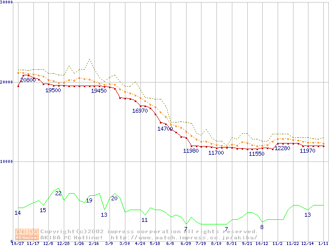 WD Caviar (7200rpm,UltraATA/100,2MB)の最安値推移