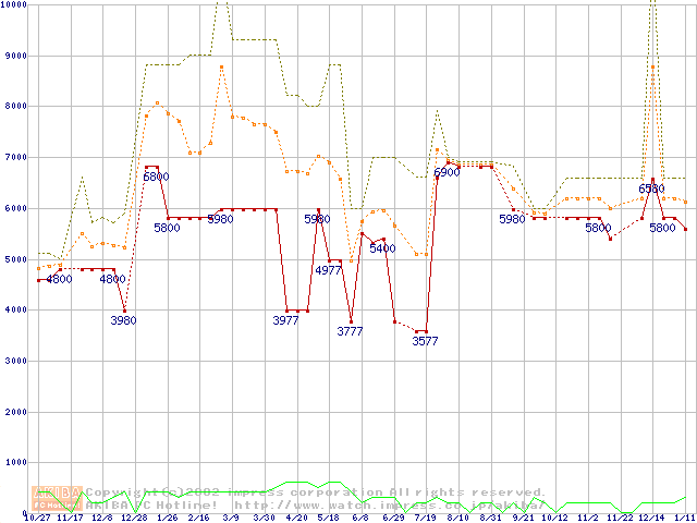 PC133 SDRAM DIMM CasLatency=3 ECC対応 Registeredタイプの最安値推移